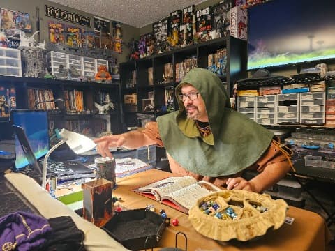 Hello, I'm Rob and at my tables it is the players that get the spotlight! I have over 40 years of experience in gaming and improvisation. I am a professional game master and game designer. My introduction to the hobby started in the early 1980s with AD&D 1st edition as an elf thief whose career was ended prematurely by a giant squirrel. It was crazy, fun, and unpredictable and I loved every minute of it! The games I run are fast-paced, safe, and fun and I place high emphasis on roleplaying and the rule of cool. All are welcome! Genres are varied from epic high fantasy to dark personal and unknown horror. Whether you're a group of adventurers trying to stop a dragon's evil plans or are running the shadows in New Seattle, my goal is to help tell an engaging immersive story and provide fun challenges to make your character shine in the spotlight. Safety tools I use: Session 0